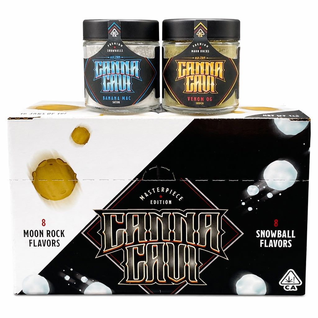 Canna Cavi Snowballs x Moonrocks is not casual weed. It’s a premium infused cannabis box built for serious sessions. With 16 jars split evenly between Snowballs and Moonrocks, it gives you potency, flavor, and variety in one clean package.
