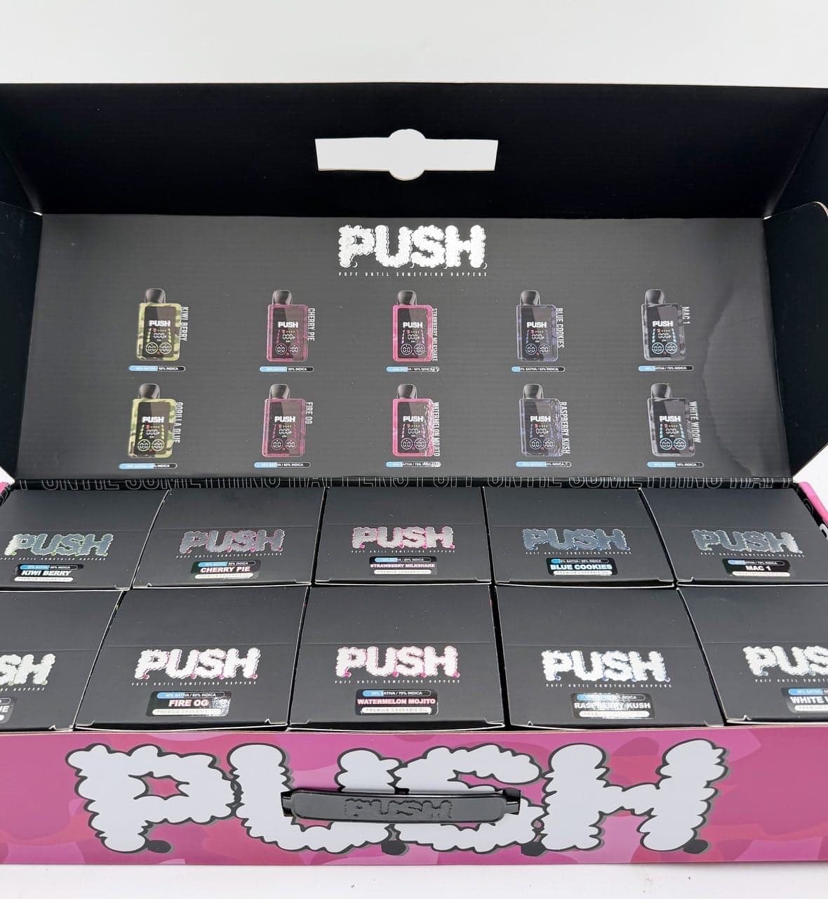 The Push 2G Disposable comes in 10 flavors and strains. The master box has a selection of 50 units. Five devices per flavor. This makes inventory management easy for retailers.